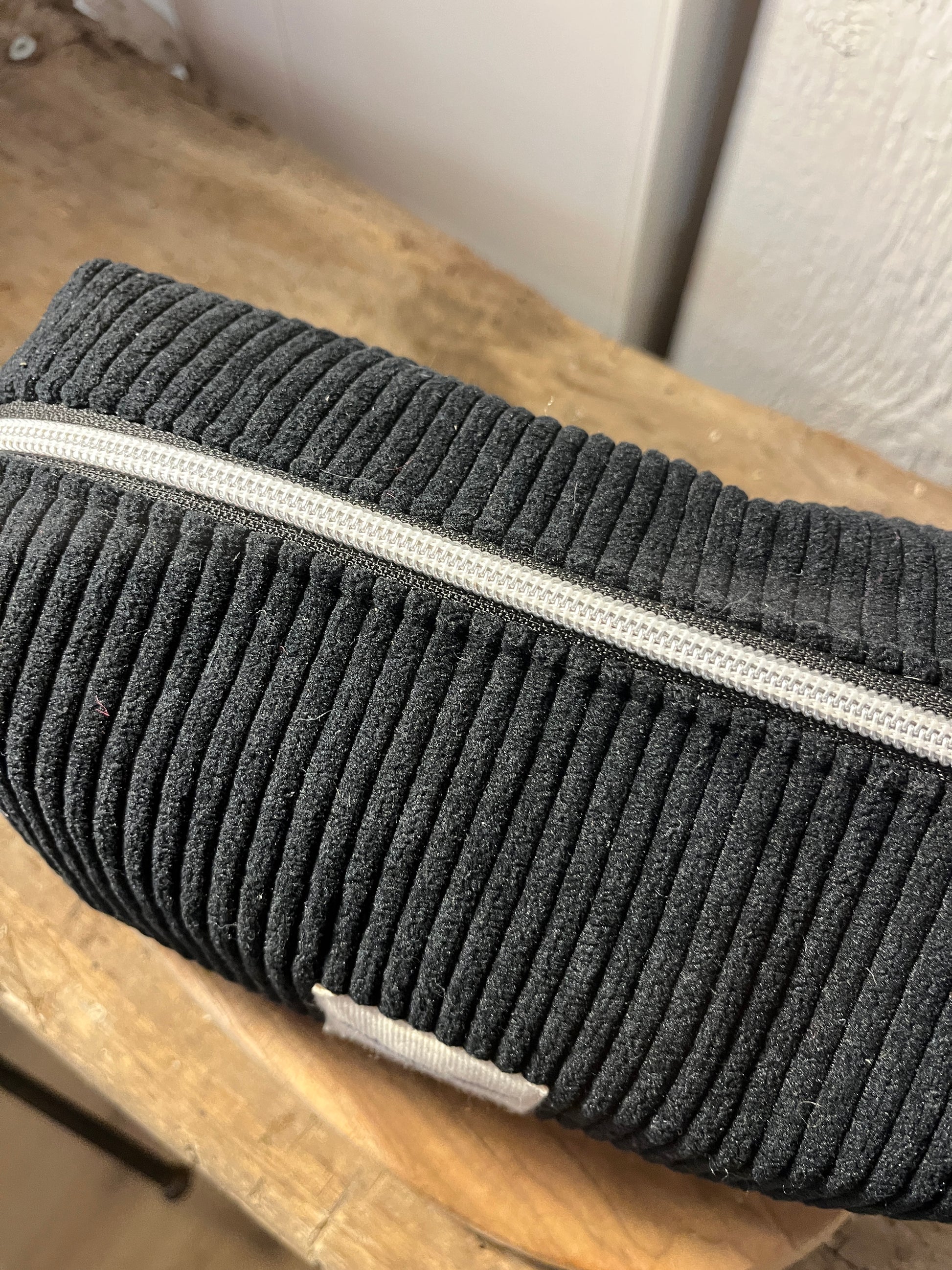 La trousse de toilette Maison Mer est cousue main en petites séries, dans mon atelier face à la mer en Normandie.